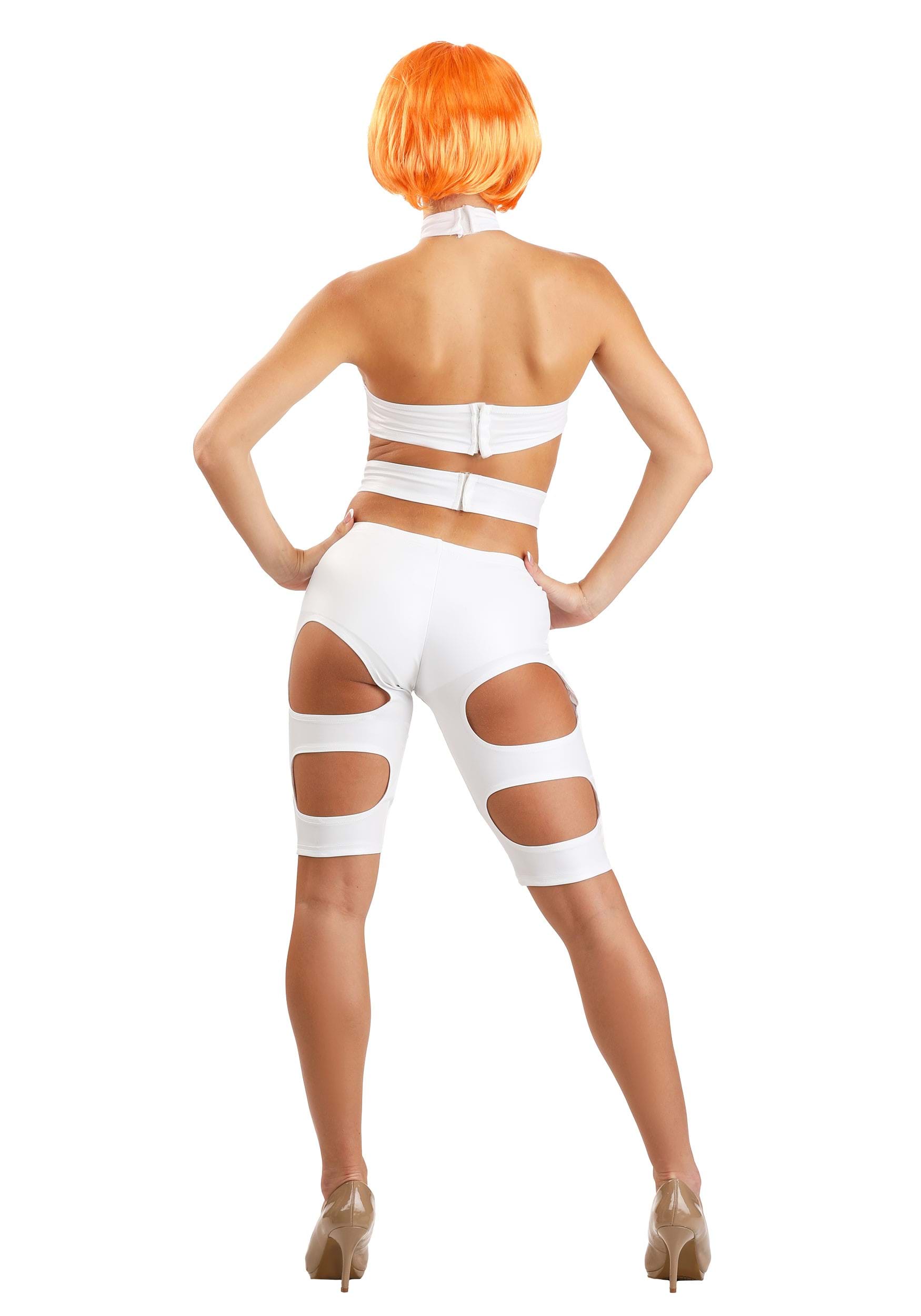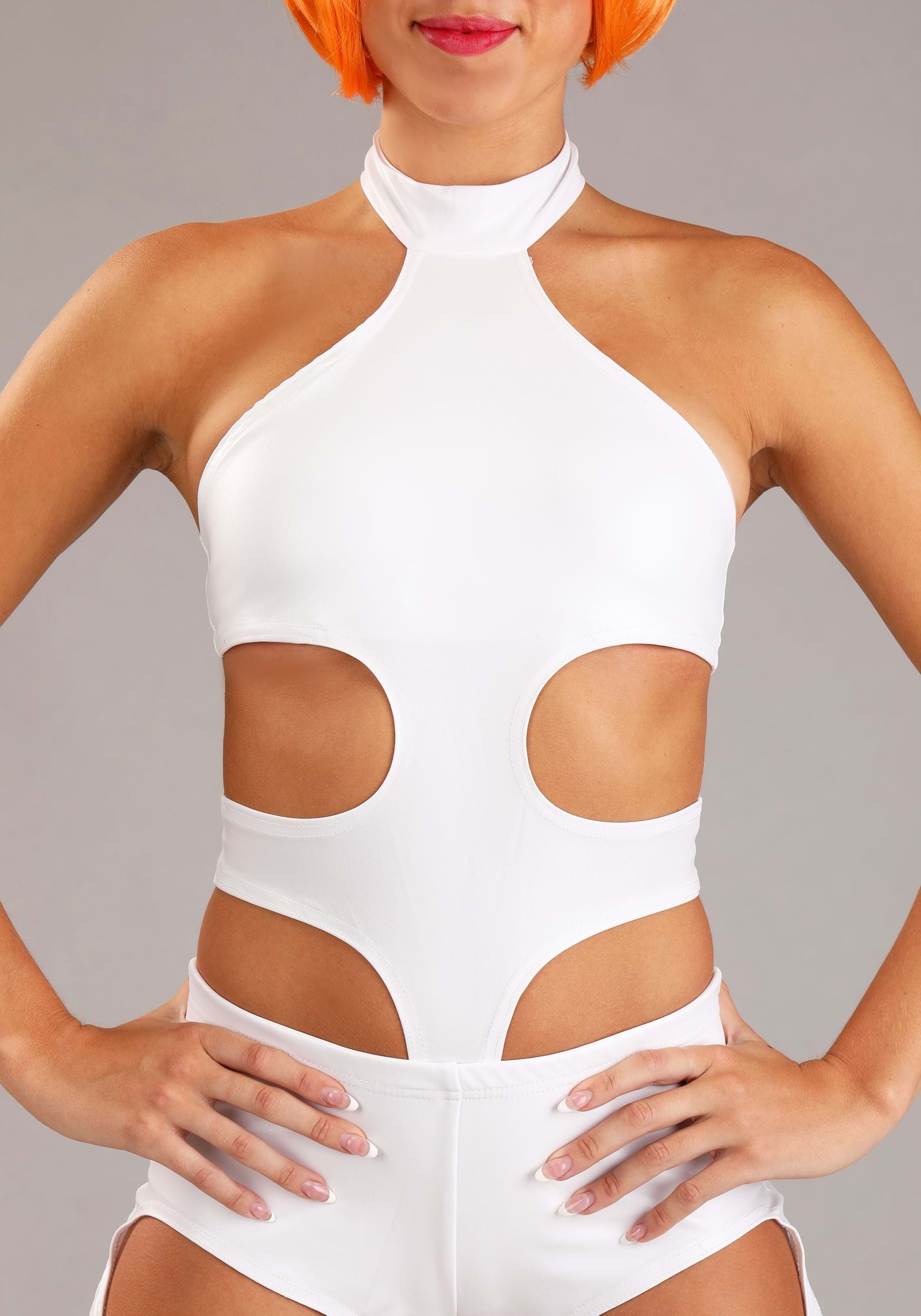 Come help and become humanity’s greatest and most glorious hope in this 5th Element Leeloo Thermal Bandages costume. Unite the four elements to conjure forth the one being who is destined to save us: Leeloo Dallas Multipass! … Well, close enough, anyway. Don this shining white jumpsuit with hook-and-eye closures at the choker and two upper body straps and burst your way into the scene once your cellular regeneration is complete. You will look especially futuristic in the jumpsuit alone, but join the look with a vivid, neon orange wig and you’ll be ready to dismiss the Darkness and save humanity from an eternal destruction and look amazing while doing so!