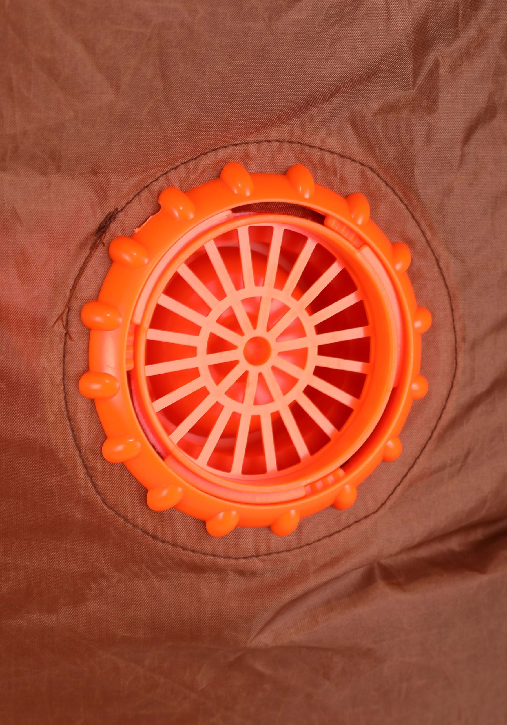 - Head is fully enclosed; clear view port in character mouth for limited vision