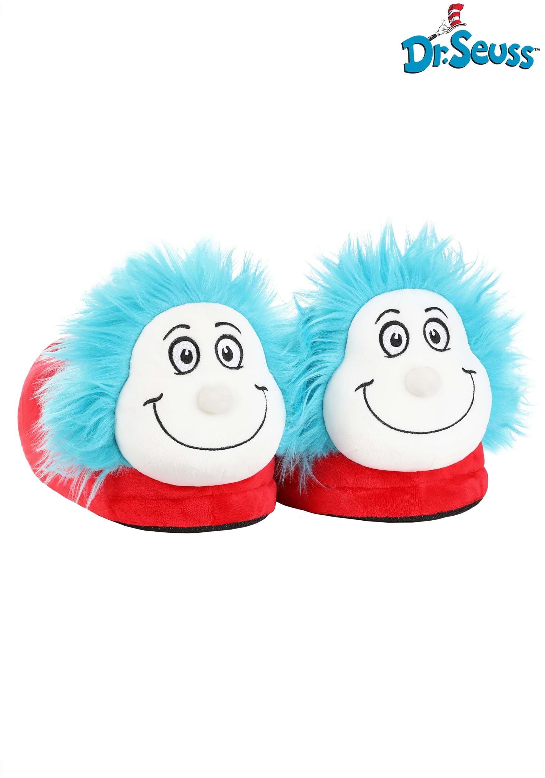 This is an exclusive pair of Adult Thing 1 & Thing 2 3D Character Slippers.
