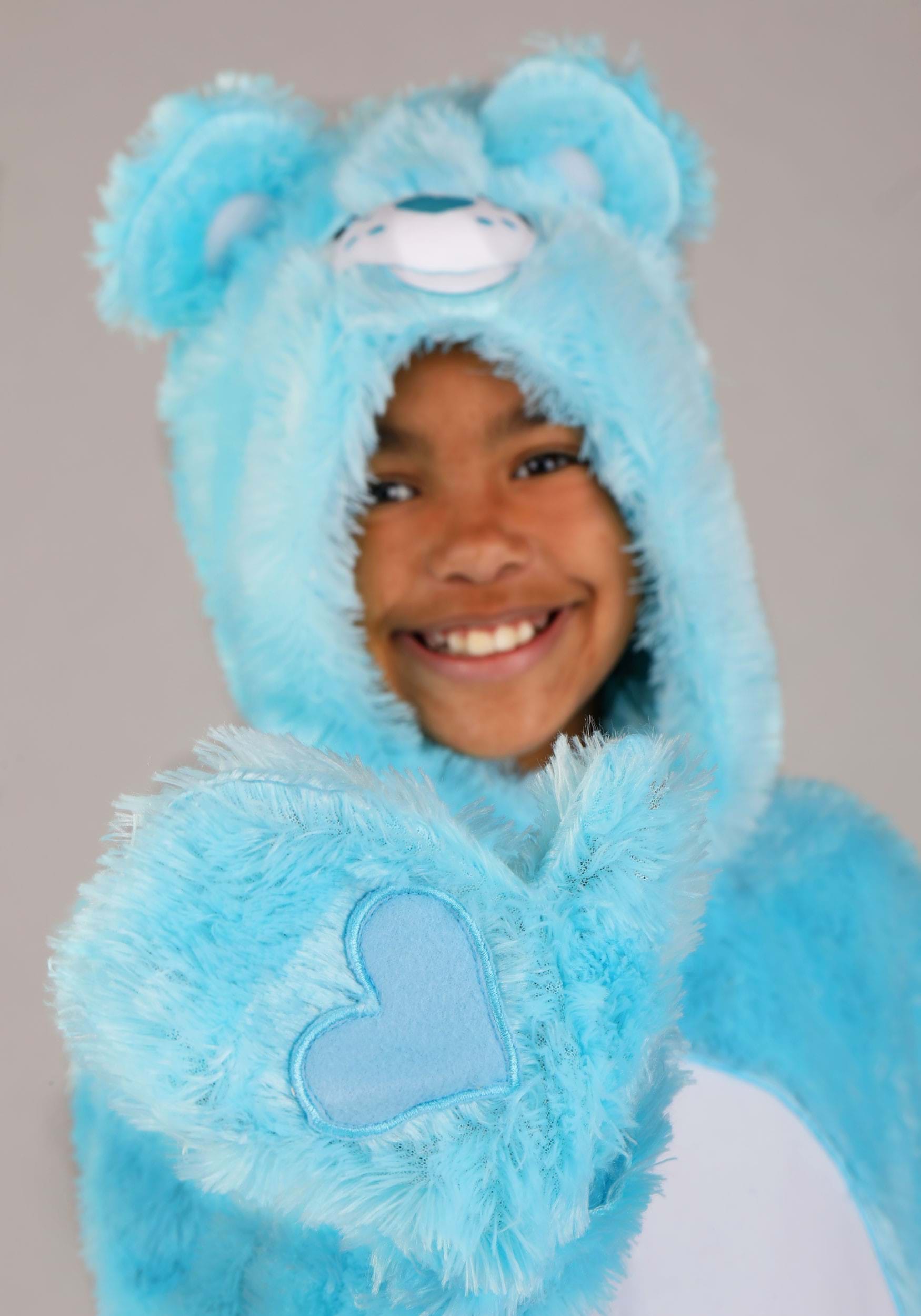 The Made by Us classic Bedtime Bear costume is a high-quality costume with a full-length zipper in the front. The ultra-soft fabric is warm and comfortable, perfect for layering. An attached hood features Bedtime Bear's face and rounded ears while mitts are fastened to the end of sleeve cuffs. The belly badge has an appliqued belly badge and included shoe cover complete the officially licensed head-to-toe disguise.