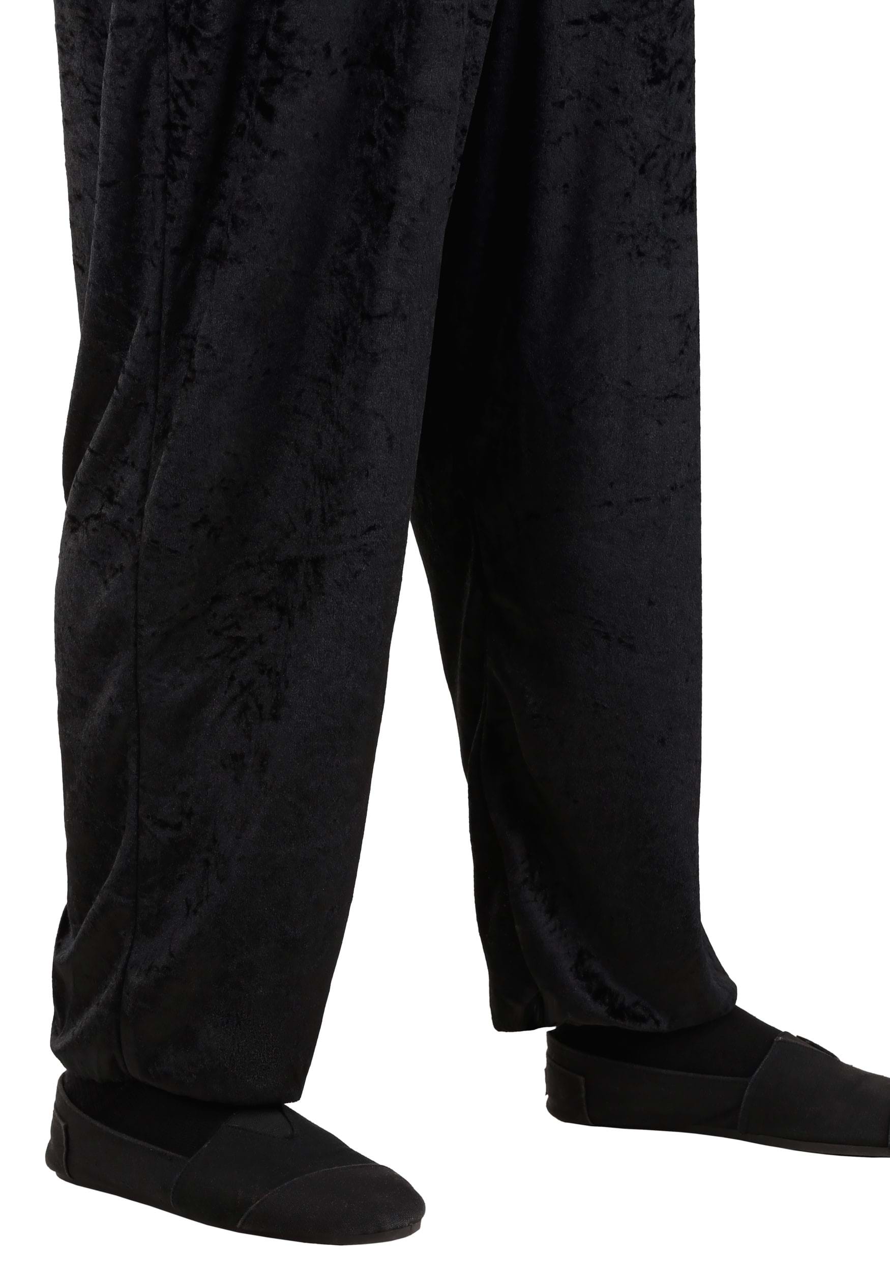 - Jumpsuit front has white plush fabric inset with sewn-on red felt bow tie