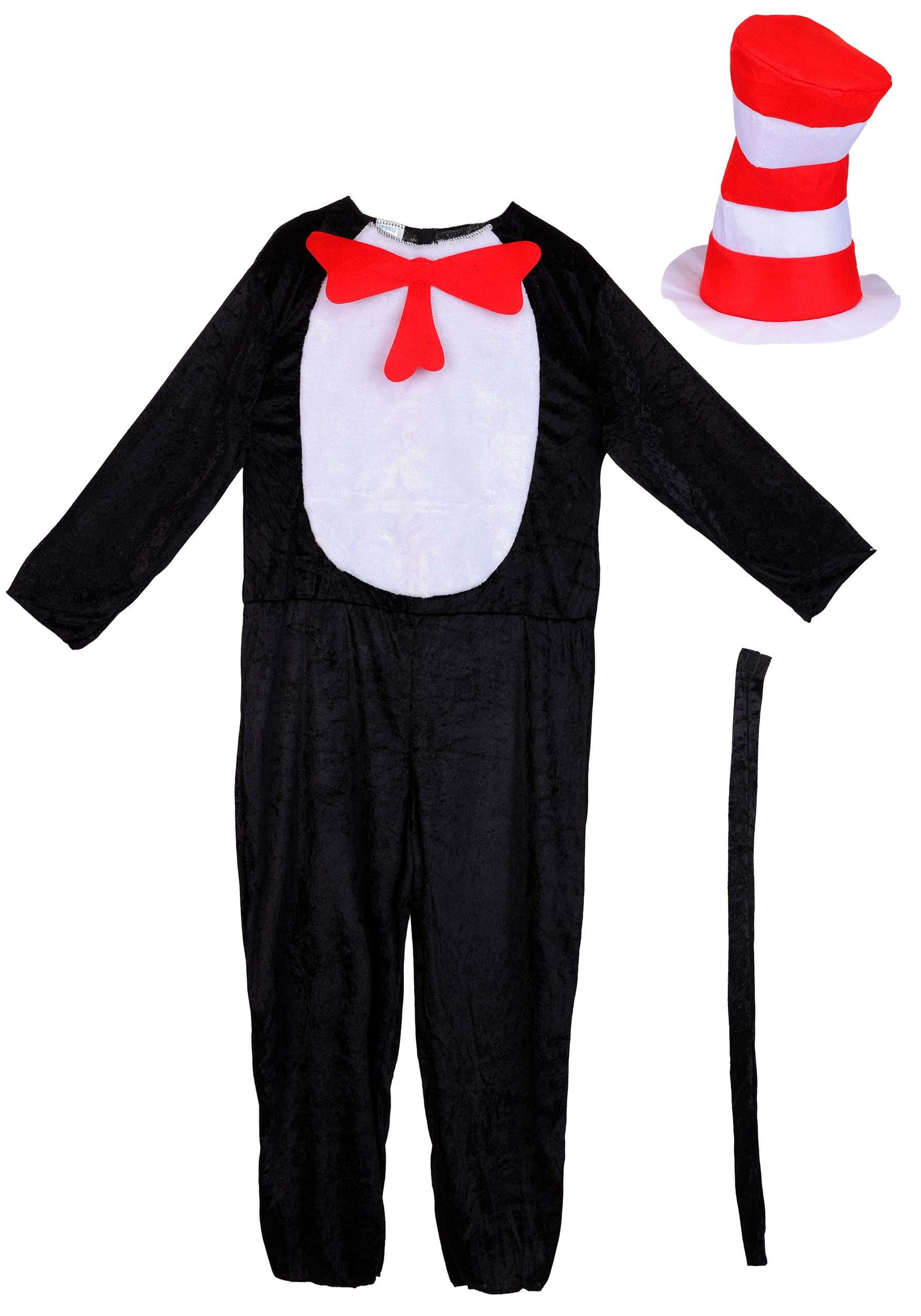 Dressing up as the iconic Cat in the Hat from Dr. Seuss is the perfect idea for cat lovers who can recite a silly rhyme any old time (see what we did there?). This officially licensed adult Cat in the Hat costume comes with everything you'll need for the magical transformation to take place. This black jumpsuit features a white tummy and an attached bow tie and looks identical to Dr. Seuss' illustration. The red and white striped top hat completes the playful storybook look. Just polish your rhyming skills and you'll be a great representation of the classic cat by Dr. Seuss.