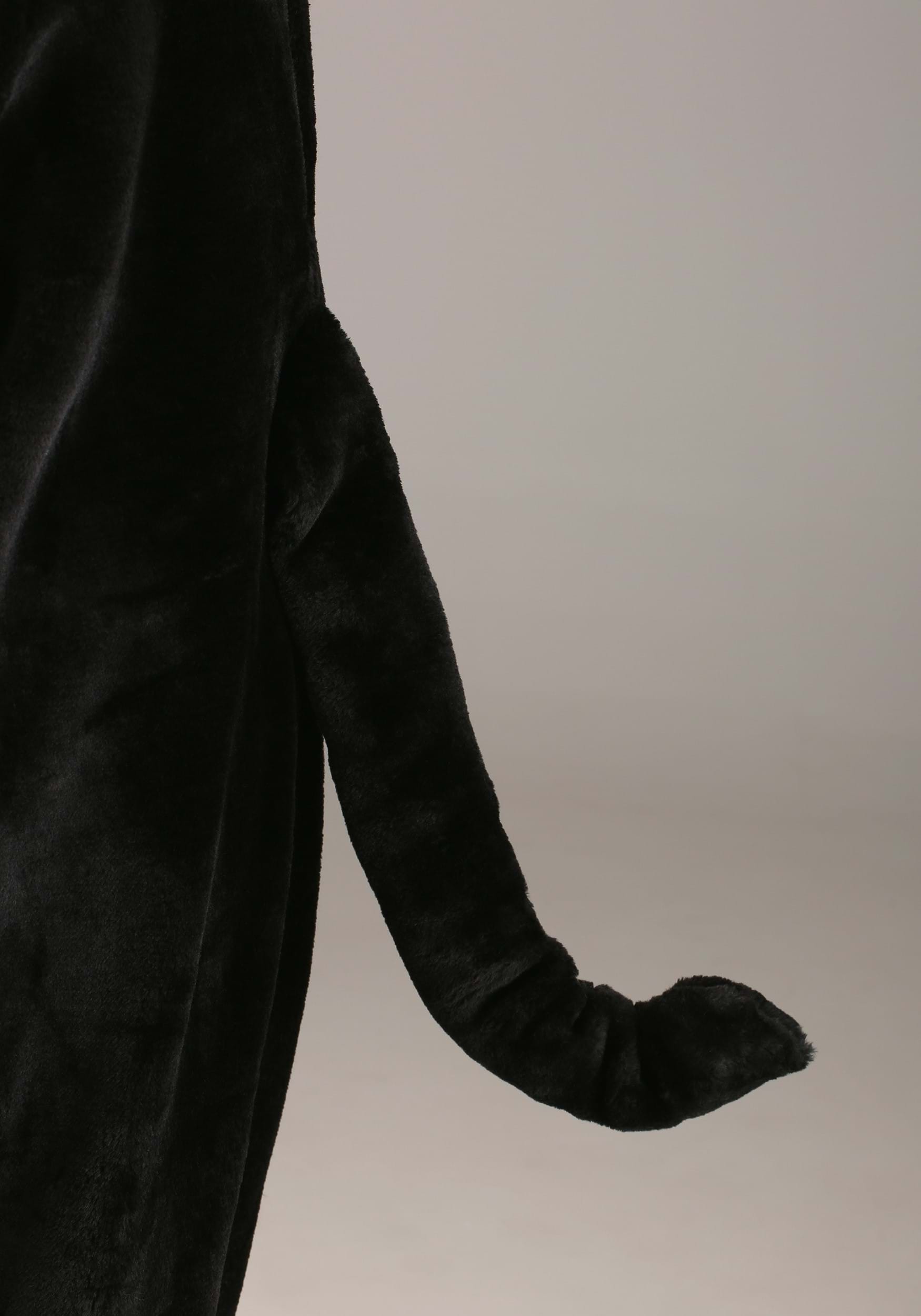- Body of jumpsuit is plush fabric, with long-pile faux fur belly inset panel