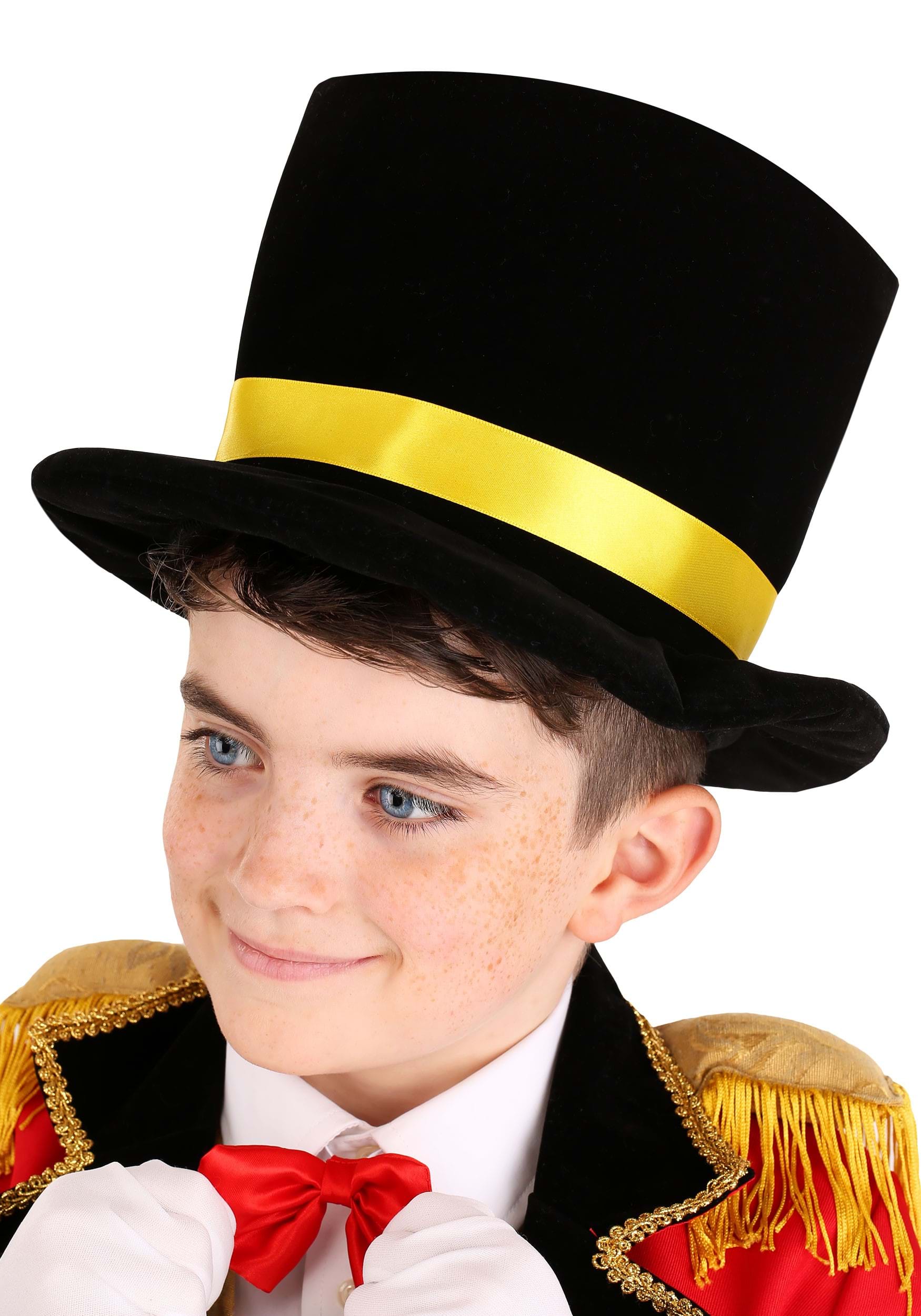 So, believe it or not, your little one has ambitions for leading the circus! We can help out with this amazing Ringmaster Boy's Costume. His red twill tailcoat jacket is, frankly, something we all wish we had growing up. The vivid red panels combined with the black velvet cuffs and lapel are a dazzling display all on their own. But, the gold-accented vest, bright bowtie, and the iconic black velvet top hat make for the completed look that we've all been secretly wanting!