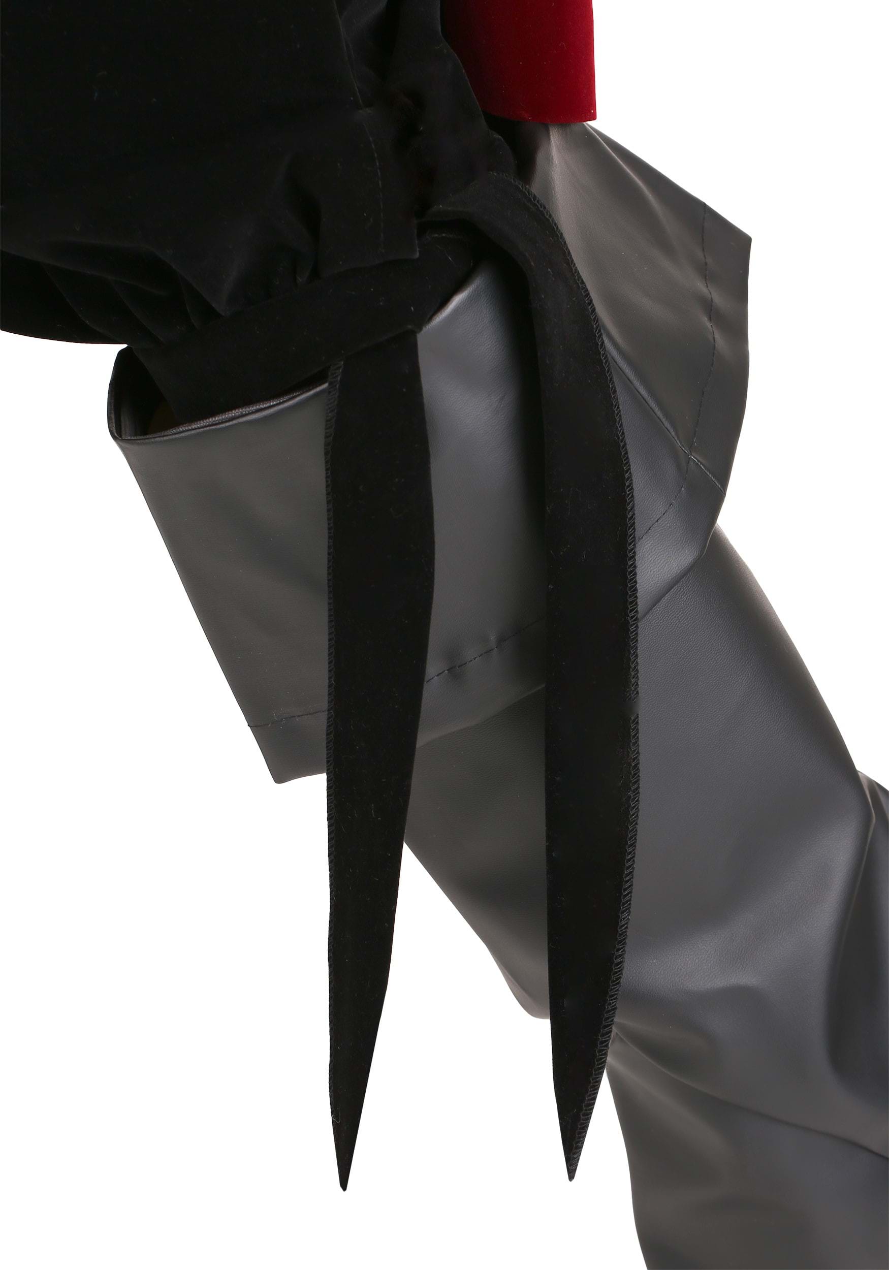 This Deluxe Captain Hook Plus Size Costume comes with everything you need to feel like the delicious- er, we mean deadly pirate Captain Hook! From the red velvet jacket to the shin length black knee pants, You'll have anyone who sees you shaking in their boots. The faux leather boot tops are perfect for sliding over your own shoes, and the tricorn hat is a necessity for this pirate! All you will need is your hook, and you will be all set.