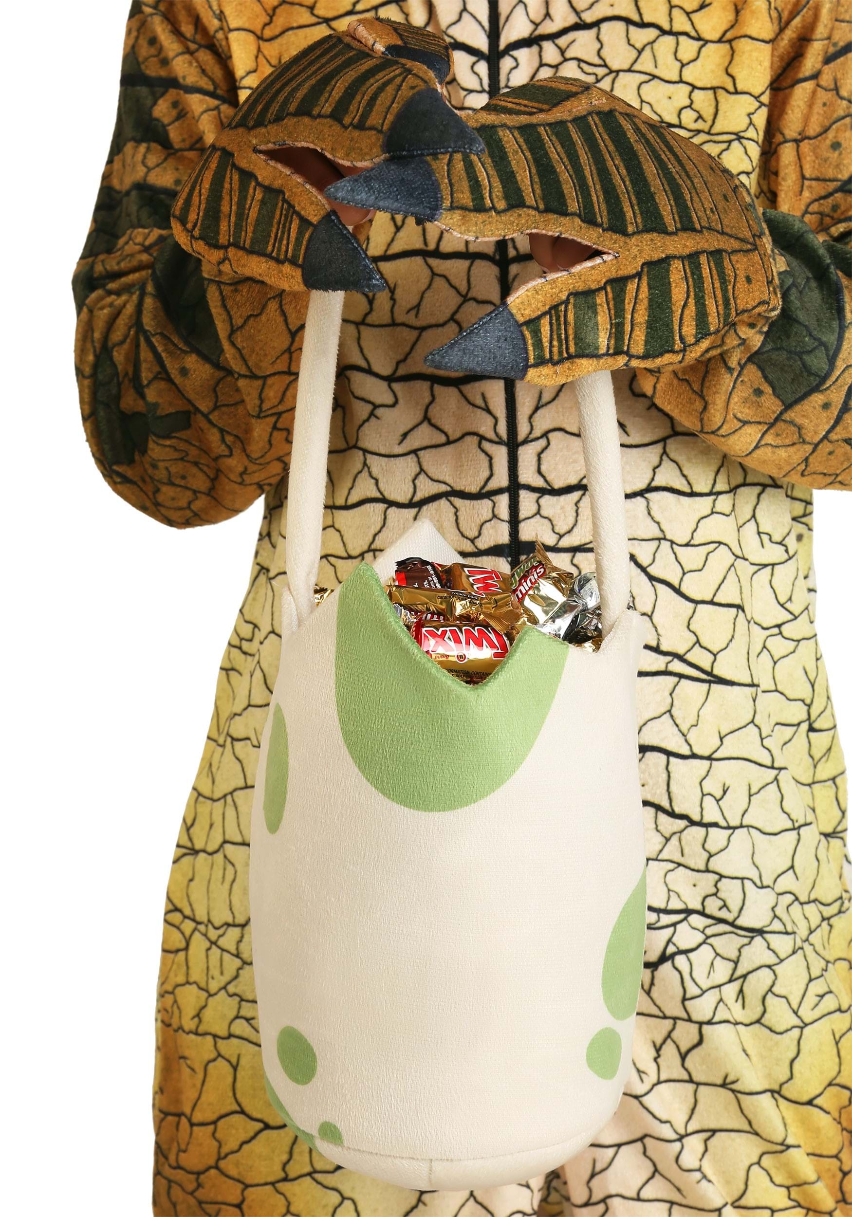 With our exclusive Dino Egg Treat Bag, you can bring that dino-mite idea to life for Easter, May Day, or Halloween! The foam-backed Minky bag features green printed spots that give it a cartoonish eggshell texture. The attached handle is shaped from the same off-white material and ensures that carrying the bag around arms or hands is comfortable. Fill the Made By Us accessory with sweets and surprises to gift a friend. Send your dino-obsessed kiddo on their merry trick-or-treating way with the 7-inch pouch ready to fill. Or fill the soft basket with a bit of Easter grass and join the family for a much safer version of a dino egg hunt!