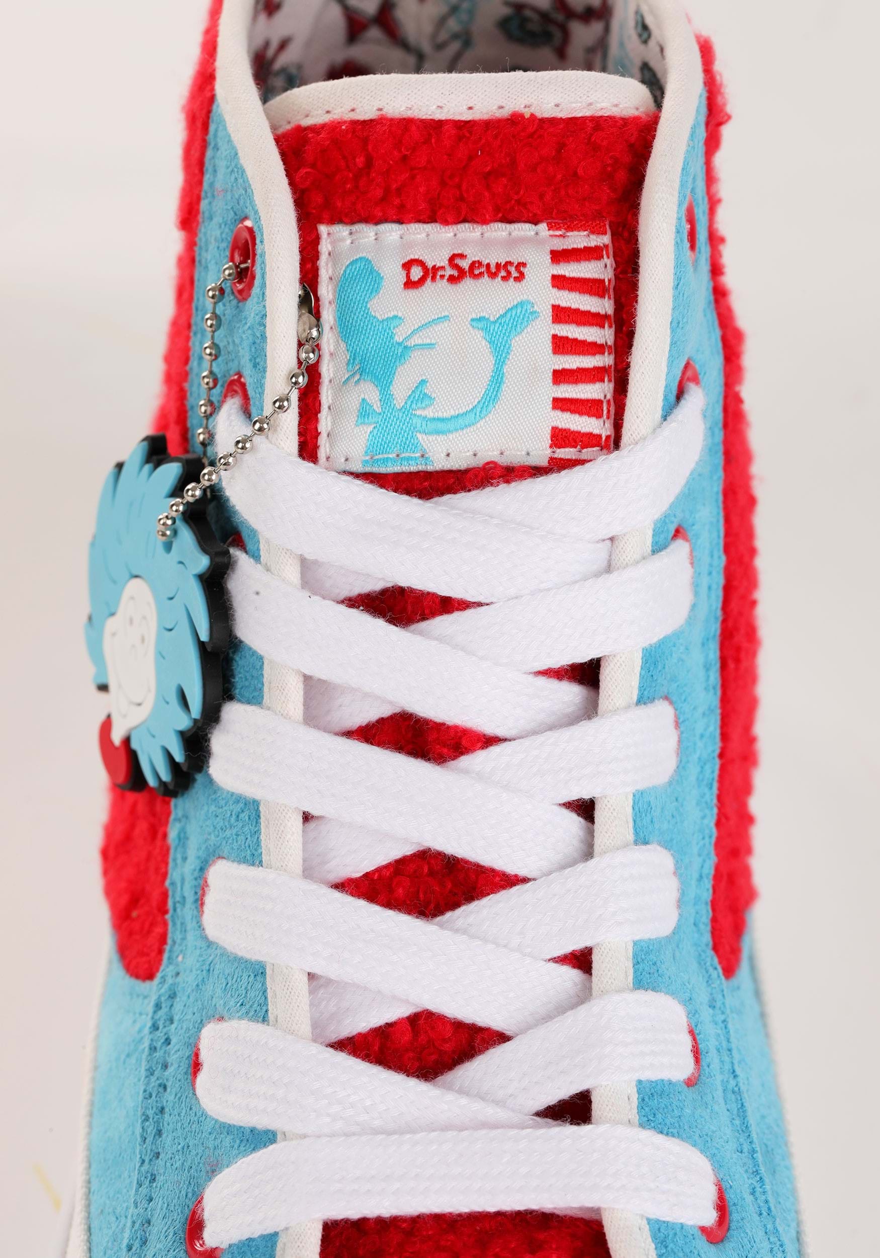 And because the Things love a little flair, there's a removable rubber Thing 1 chain attached to the laces, ready to dangle its way into your heart (or onto your keys, if you're the practical type). Rubber soles keep you steady even if your plans get a little topsy-turvy.