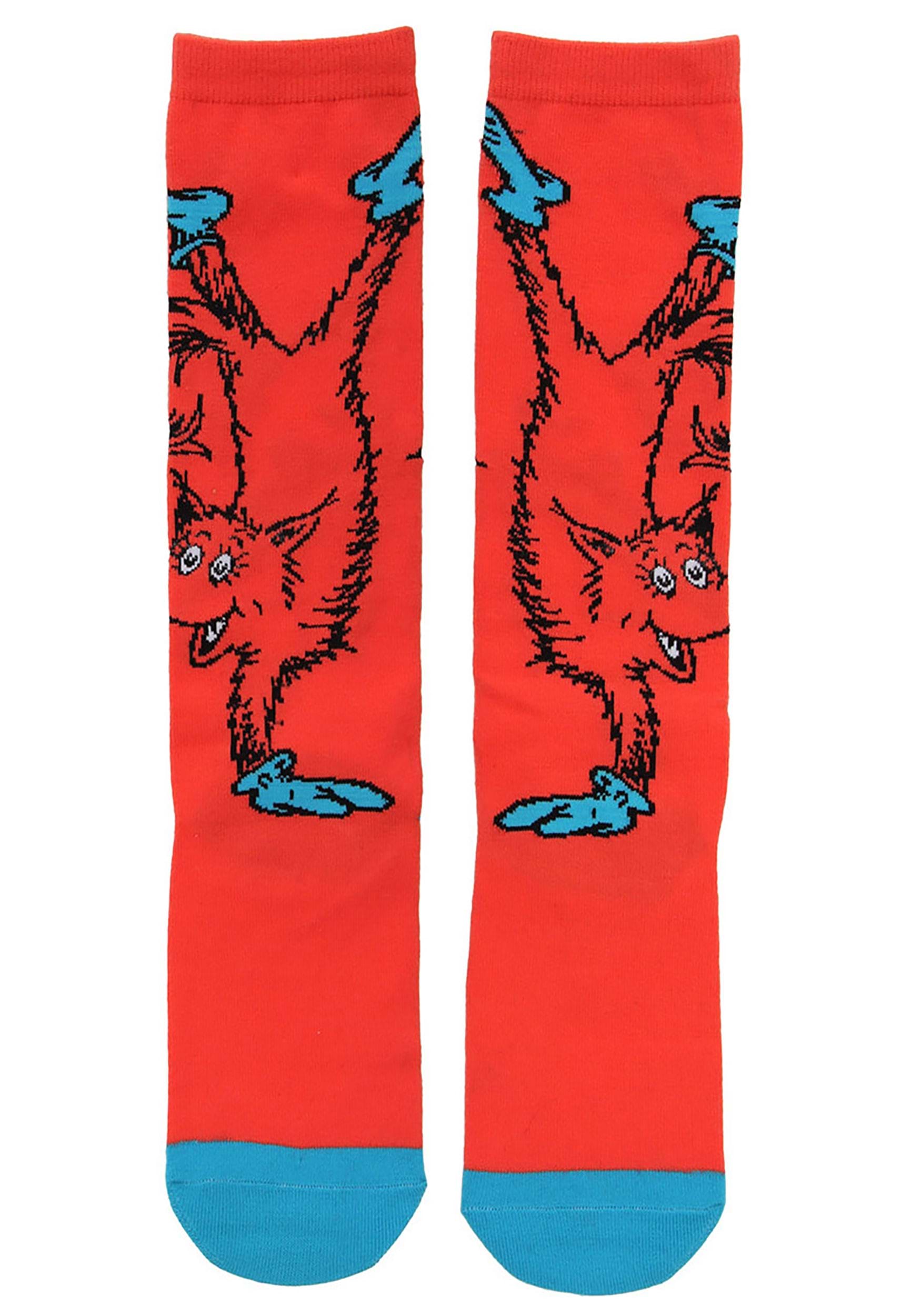Don't be a tweetle beetle noodle poodle bottled paddled muddled duddled fuddled wuddled individual: Wear this officially licensed, exclusive Adult Fox in Socks Knee High Costume Socks! The soft red and blue socks feature knitted-in graphics of Dr. Seuss's famous fox doing handstands in his footwear. They make the perfect gift for anyone who loves to read!