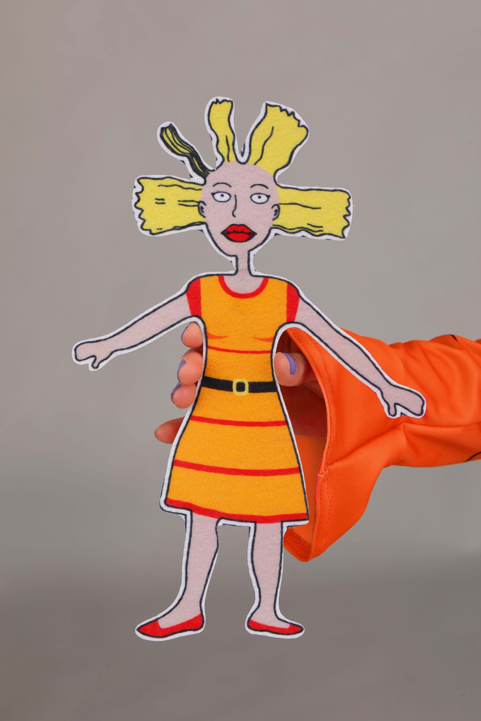 And yes—Cynthia’s here too. The costume includes a soft felt version of Angelica’s iconic doll, complete with wild hair and her tiny orange dress. It tucks easily under one arm for important monologues or emergency tea parties.
