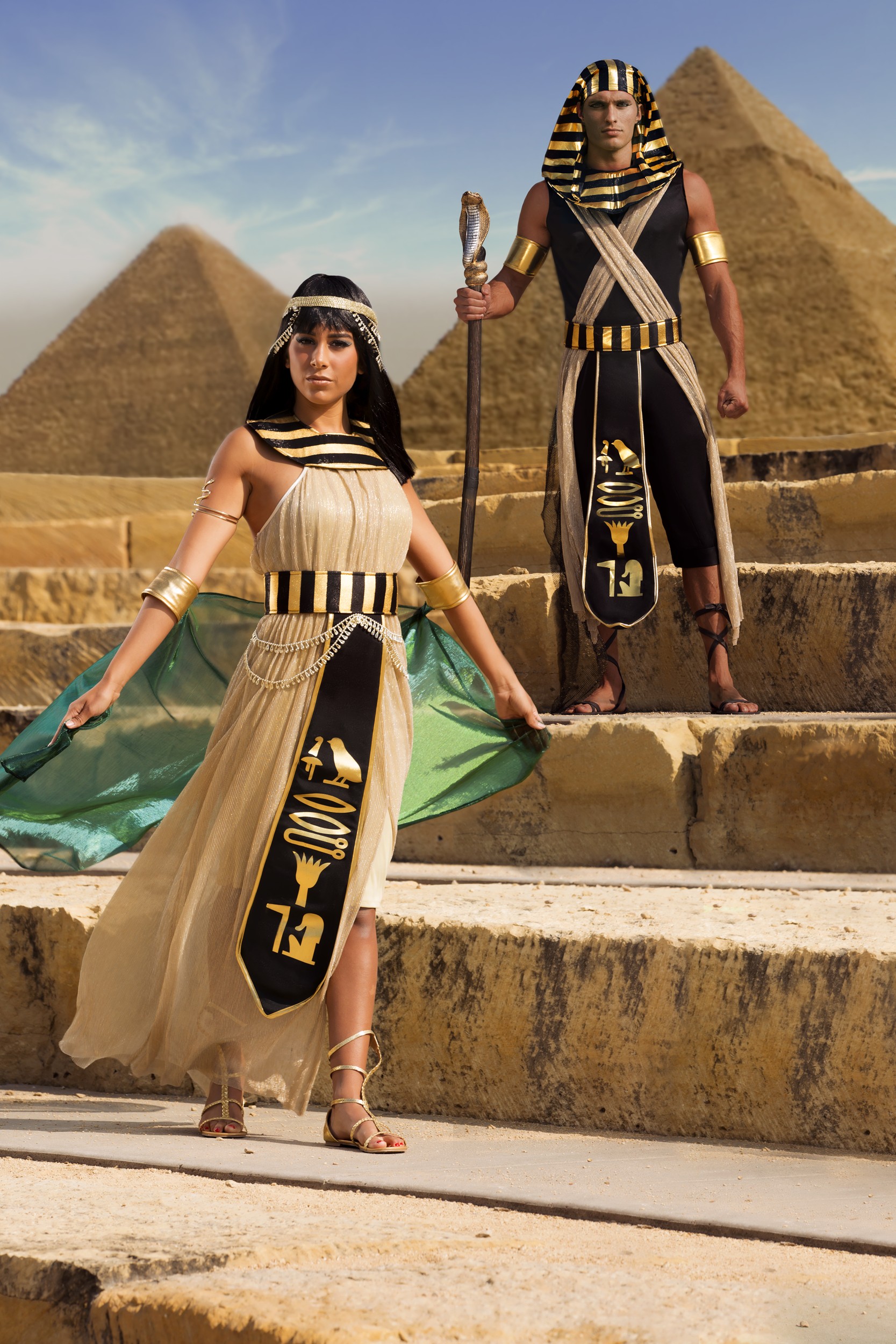 This costume will transform you into an all powerful king of Egypt! The costume comes in primarily black and gold, a color scheme that comes off as both powerful and regal. You'll be wearing a cape and a belt, which has a printed drape down the front. The other two accessories for this costume are the armbands and the headdress! The headdress makes this costume instantly recognizable, and while the armbands are made of foam, they make you look tough as nails.