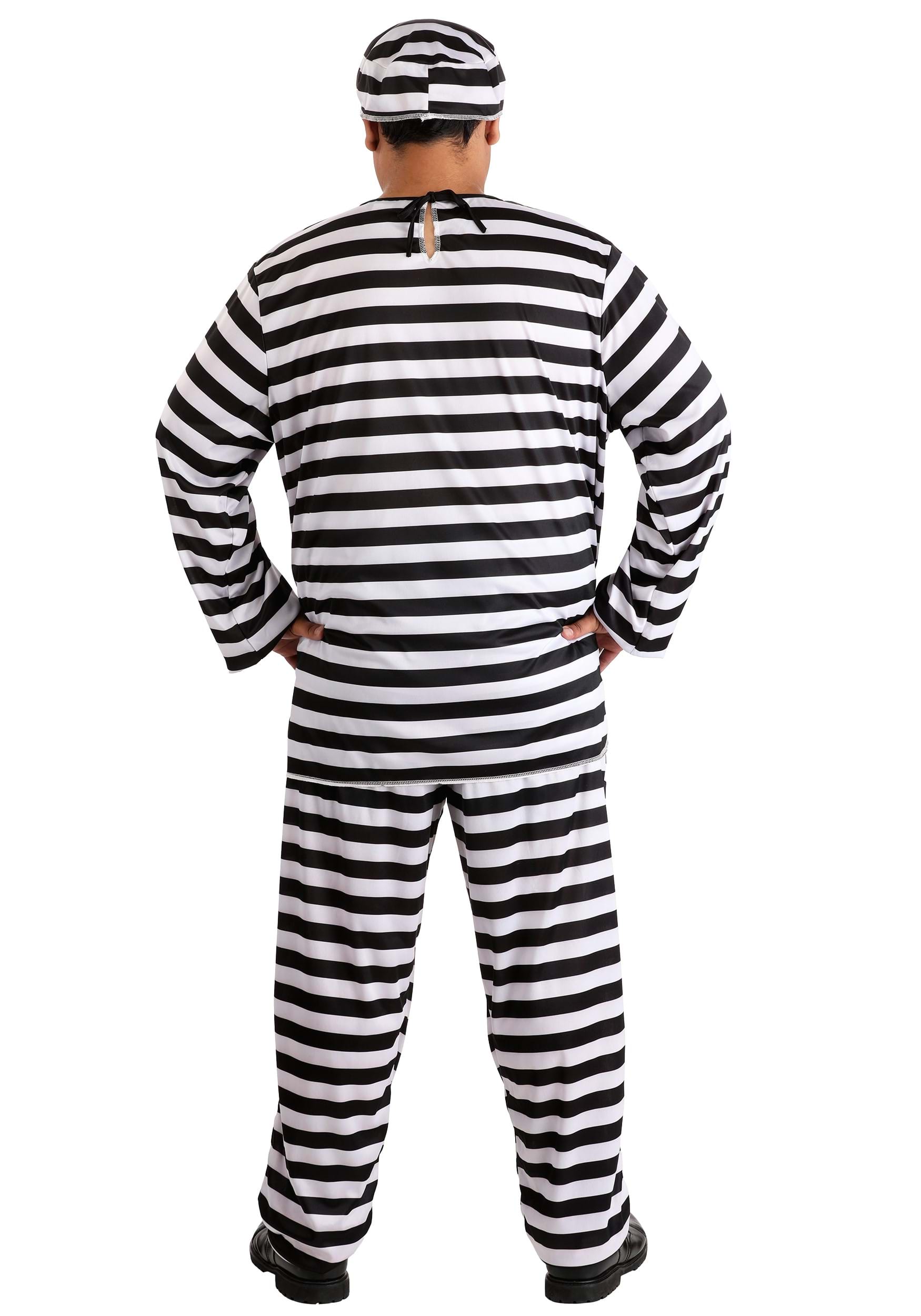 This Men's Plus Size Prisoner Costume comes in any prison uniform's classic colors: black and white! The pants have an elastic waistband, and the shirt fastens behind your neck with fabric ties. The number 235629 across the front of your shirt is your very own prisoner number! The final piece for this costume is the round fabric cap, which looks like something you might see in an old-timey prison movie! This costume can be incredibly convincing, so you need to be careful! Any cops that see you in this will be suspicious, even though it might be Halloween!