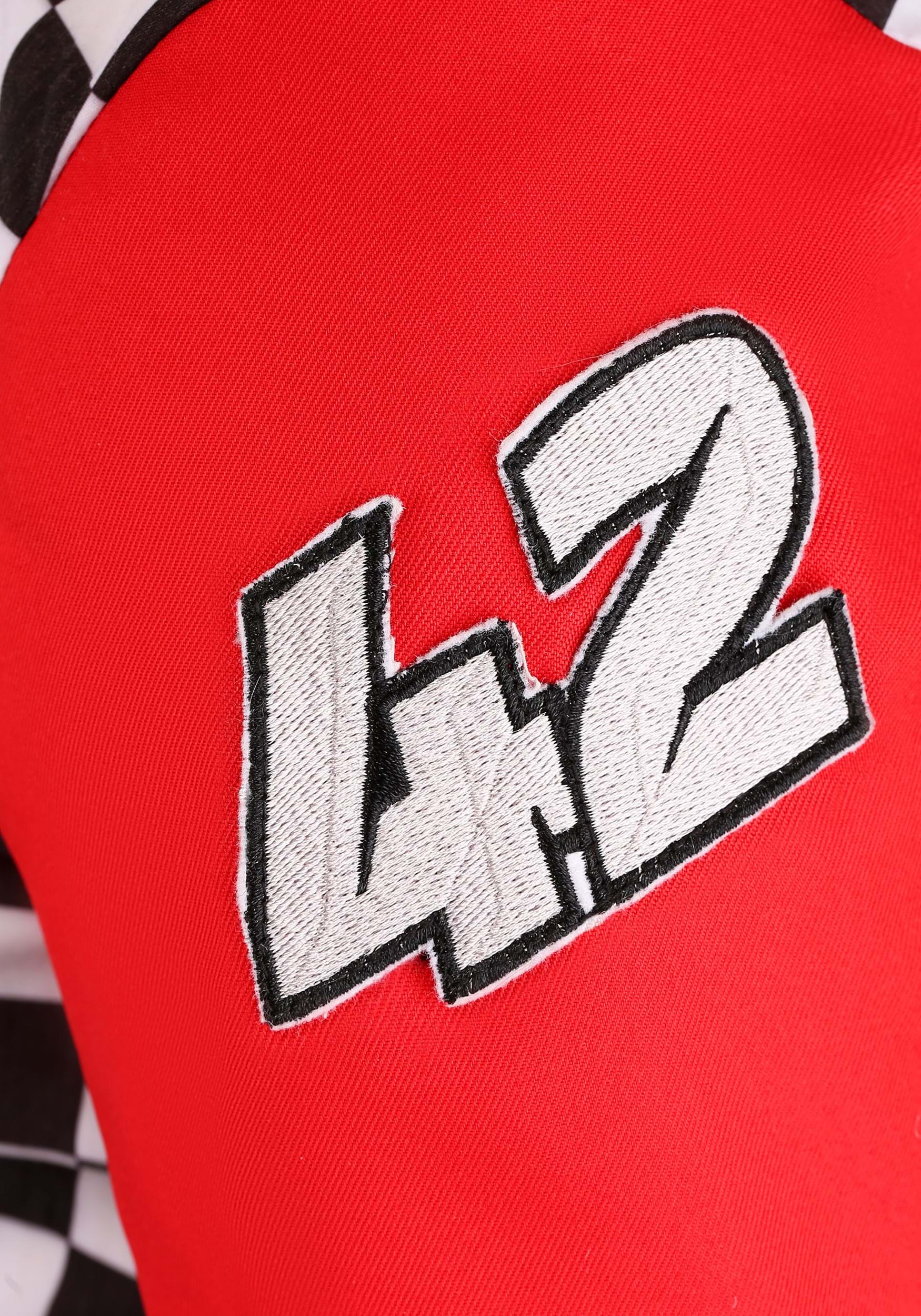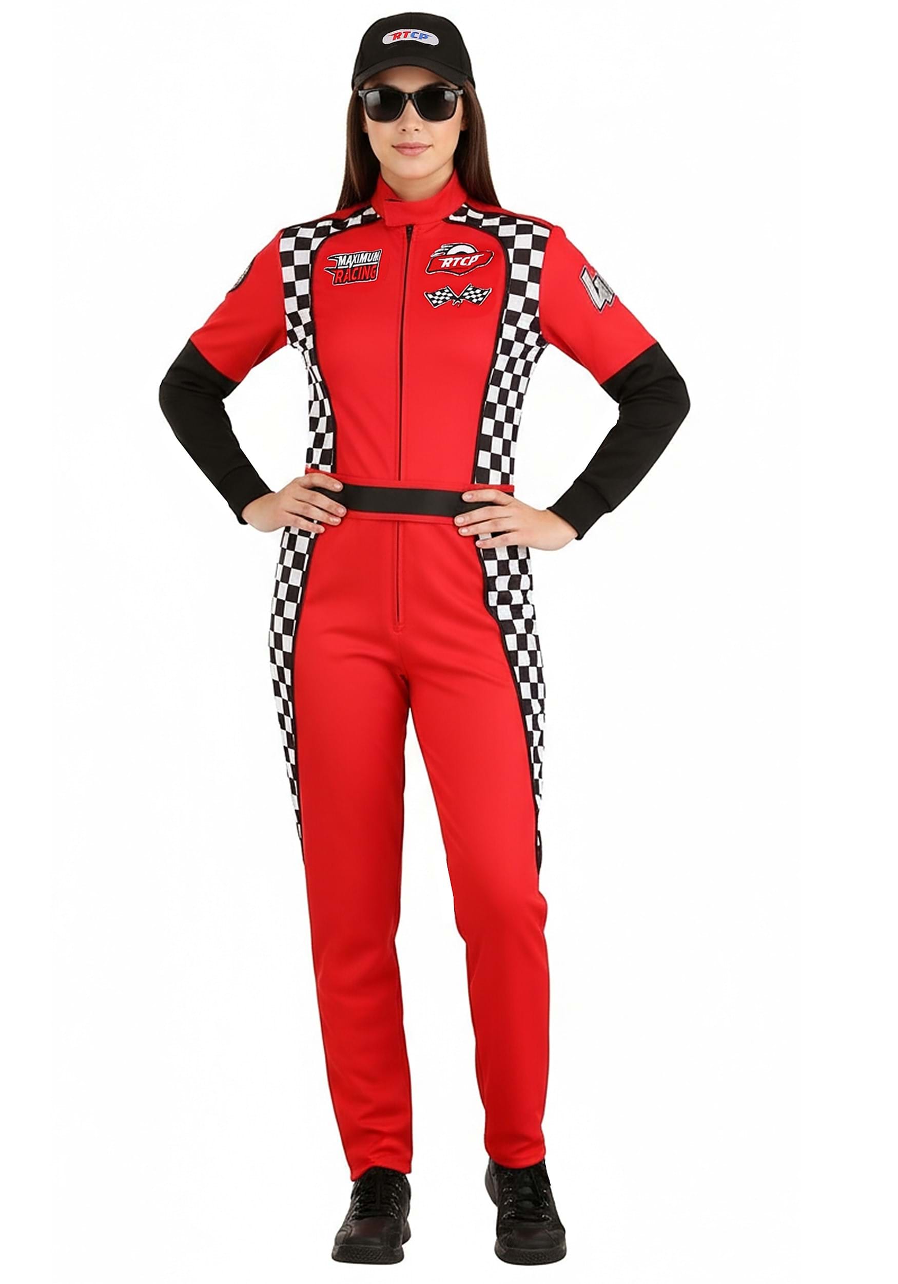 This exclusive costume has all the bells and whistles you need to become the swiftest racer on the track. Your jumpsuit is decorated with a checkerboard paneling down the left and right sides. There are a ton of embroidered patches on the sleeves as well as on the chest. You'll look and feel like the real deal.