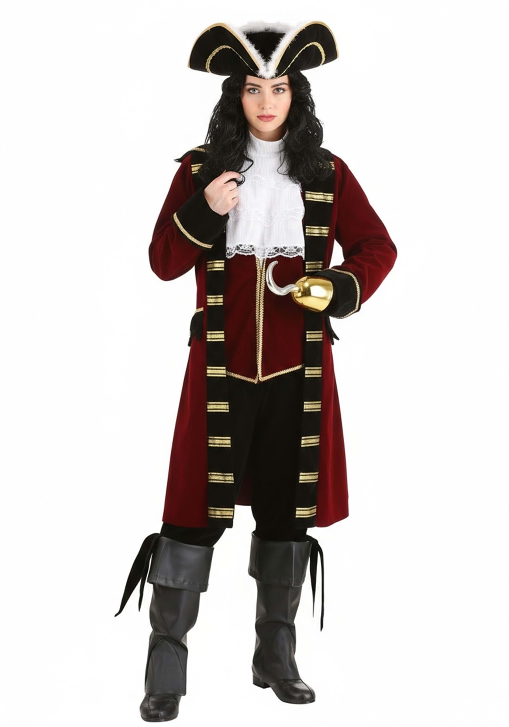 And a classy one. Captain Hook has style. That mustache? That coat? This man looks like a professional pirate, which we totally admire, despite his mean streak. And even though we're not keen on making anyone walk the plank any time soon, we most definitely could get behind someone who wanted to dress with that much style. Our Ultimate Captain Hook Costume ought to do it. It includes a red velvet jacket trimmed in black and gold, a gold-trimmed waistcoat, velvet knee pants, faux leather boot tops, jabot (that neck ruffle thing), and a pirate hat to complete the captain look. We're pretty sure that if you start dishing out orders in this outfit, other pirates will fall into line without question. Just do us a favor and don't hold anyone at cannon-point? One mean old Captain Hook on the loose is bad enough.