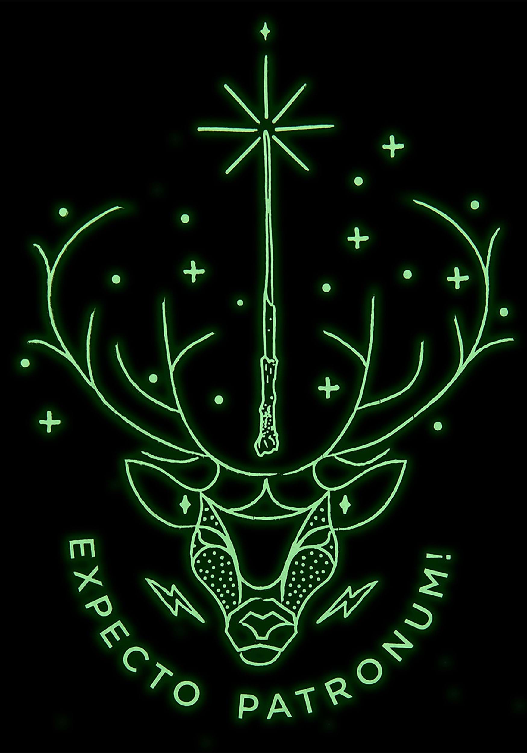 Accessorize your look and show love to the prettiest spell in the Wizarding World with this Patronus Glow Knit Scarf. It's made from classy knit yarn (90% acrylic and 10% polyester, for warmth and washability) in solid black. The ends are tasseled for some flair. The details are printed graphics and sequined for some silver glitter and glow reminiscent of the night sky. A stag's head stands out against the sparkling night sky, with "Expecto Patronum" curving underneath in matching letters. This scarf goes with every outfit, whether you're dressed as a muggle or in wizarding robes.