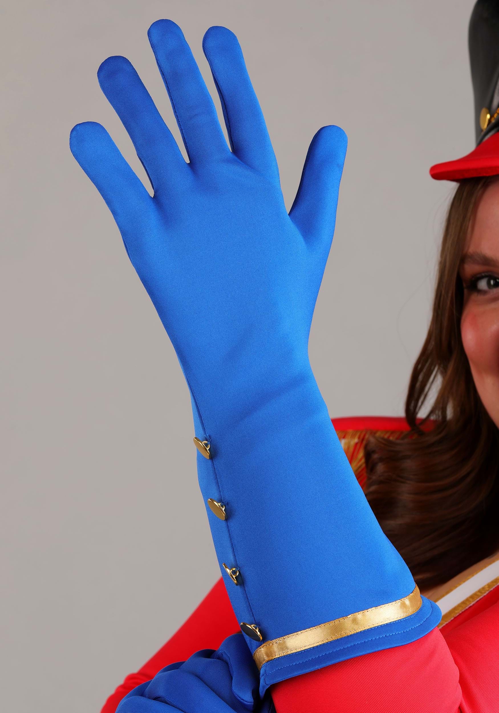 The foam-backed hat stays put with an elastic strap (no mid-dance-floor flyaways), and the matching gloves and choker come trimmed in satin ribbon and gold. Decorative buttons add toy-soldier flair without requiring actual marching. Just add boots and your best parade wave—you’ve got this on lock.