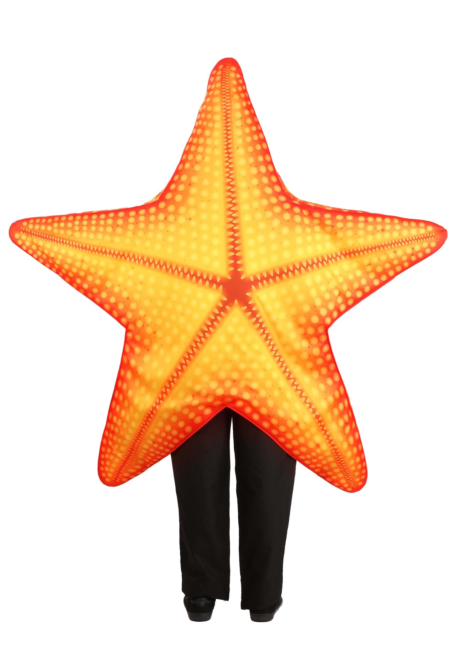 - Foam backed, jersey knit orange fabric has sublimated printed starfish graphics