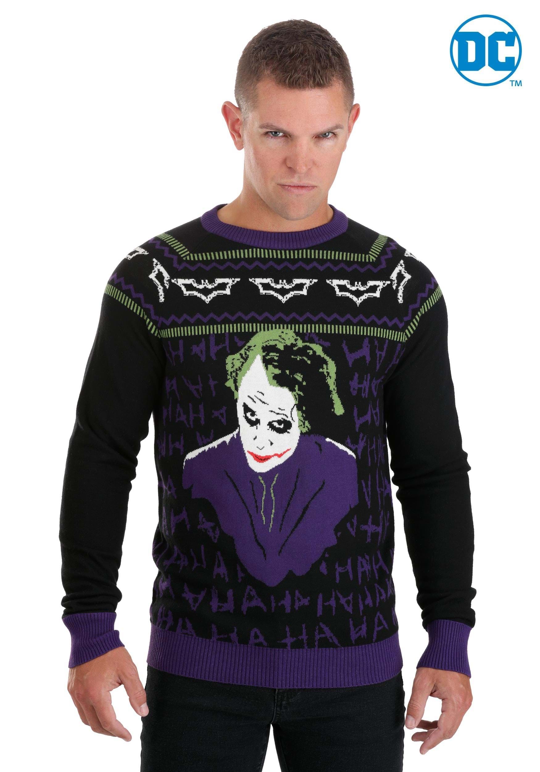 If you’re looking for some holiday apparel that’s more along the lines of frightening than festive, you might like this Joker Dark Knight Ugly Christmas Sweater for Adults. This Made By Us sweater features the villain himself with his signature makeup on the front and an all-over graphic representing his maniacal laugh. Celebrate the season in your own style with this soft, cozy sweater!