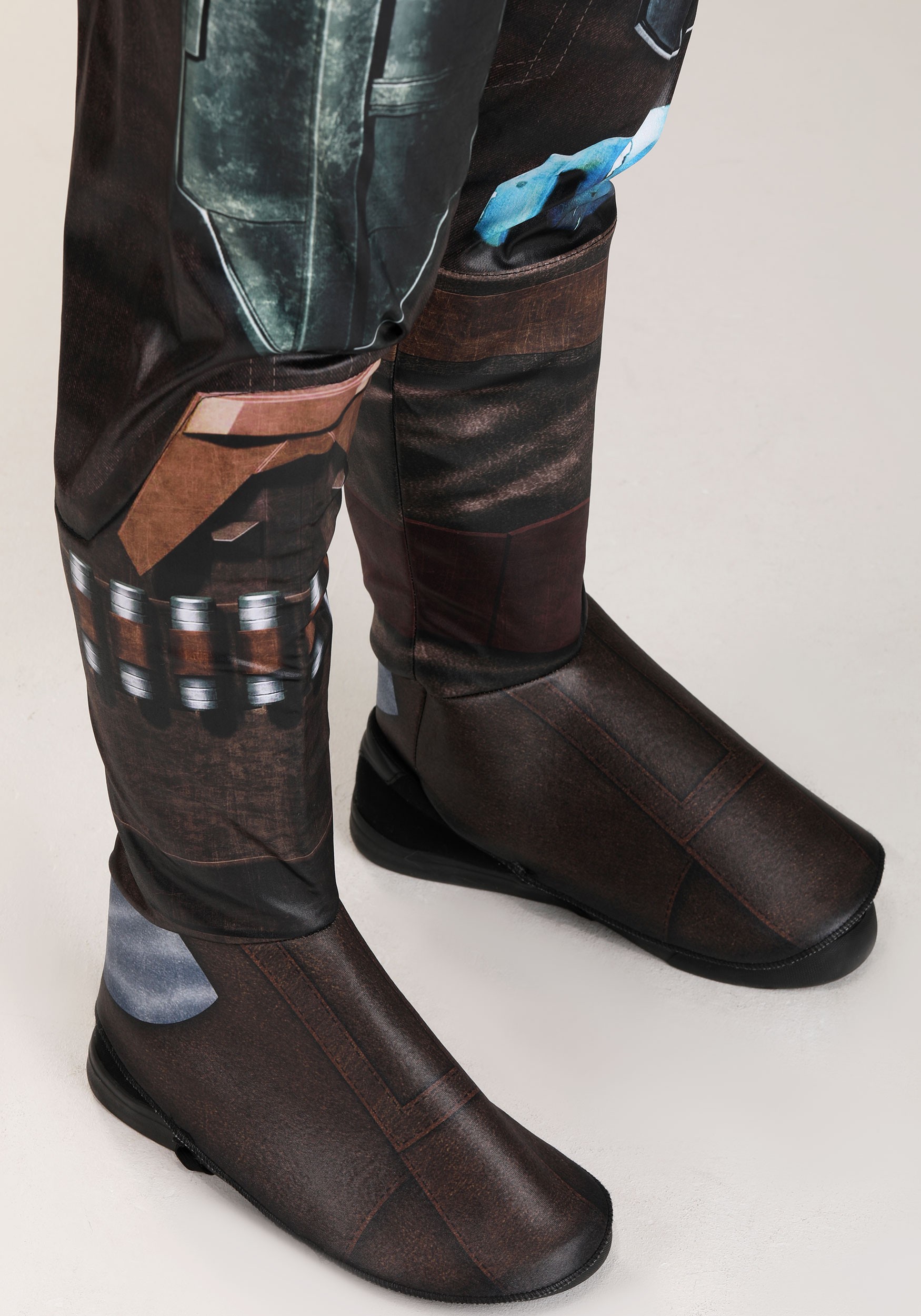 Inspired by one of the greatest warriors of the Star Wars universe, The Mandalorian Costume will have you prepared for anything! The costume comes with a jumpsuit that uses a combination of printed details and Qualux material to recreate the look of his signature armor set. The suit has silver metallic colors that mimic the look of Beskar Steel and printed belts to give you a single piece to make you feel like a true Mandalorian.